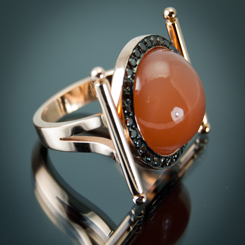 Oro rosa 750 kt, calcedonio, diamanti cognac.